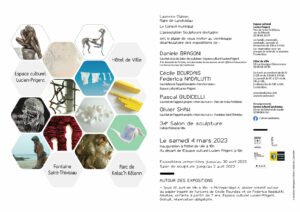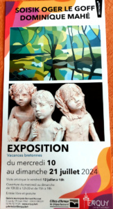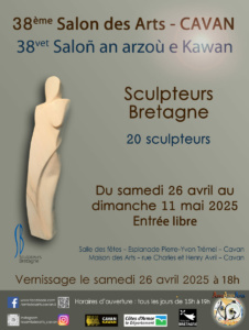 • du 26 avril au 11 mai à la salle des fêtes et à la Maison des Arts de Cavan, avec l’association “Les Amis des Arts de Cavan” et l’association “Sculpteurs Bretagne”